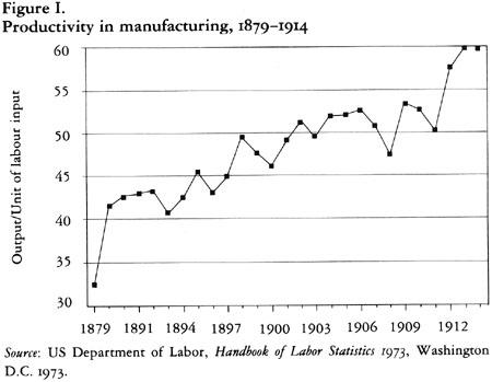 Il est donc vrai qu’il aurait été difficile pour la trajectoire de la croissance économique des États-Unis dans la période s’étalant d’environ 1850 à 1914 d’avoir divergé de manière plus décisive du premier mode de développement présenté par les régulationnistes, dans lequel la croissance repose principalement sur une exploitation accrue du travail, sur des hausses de productivité très limitées et sur une expansion géographique du système. Il ne fait aucun doute qu’après la guerre civile, l’économie capitaliste des États-Unis a vraiment intensifié très sensiblement l’exploitation du travail et a radicalement étendu sa zone d’influence géographique. Le développement économique a néanmoins succédé à ce qui peut être désigné comme un sentier classiquement capitaliste de développement, correspondant à ce que les régulationnistes désignent à tort comme une accumulation intensive, et pas une accumulation extensive. Alimenté par la concurrence entre de nombreuses entreprises, elle a permis d’importants progrès dans la mécanisation, avec une hausse de la productivité, une augmentation des salaires réels et une expansion spectaculaire de ce qui à l’époque était le marché local le plus dynamique du monde. Cela apparaît non seulement, comme nous l’avons déjà remarqué, dans les chiffres globaux de la productivité et des salaires dans la fabrication, mais également dans une observation moins homogène des contours et des tendances élémentaires de l’économie des États-Unis.