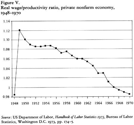 Ainsi, la trajectoire réelle de la croissance de la productivité à long terme pendant cette période est manifestement en contradiction avec l’affirmation régulationniste que les fondements de la croissance économique se limitaient essentiellement aux méthodes d’accroissement de la plus-value absolue. En réalité, la croissance de la plus-value relative permettant une accumulation intensive constituait un trait central et déterminant du processus de développement à cette époque, ce qui n’est pas surprenant compte tenu de la prépondérance, dans les États-Unis d’après-guerre, d’une forme assez pure de rapports sociaux capitalistes.