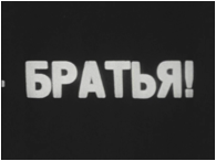 Tout à coup, Marker opère une coupe qui transcende les nations, les époques et jusqu’aux genres cinématographiques. Il transporte le spectateur des rues de Prague à un gros plan du marin Vakoulintchouk, héros du film d’Eisenstein Bronenosets Potyomkin (Le cuirassé Potemkine, 1925) engagé dans une harangue passionnée, dont le contenu est révélé par une autre coupe qui fait apparaître l’un des plus célèbres cartons du cinéma muet en cyrillique sur l’écran : le mot «Bratie! » (« Frères! »). Soudain, Marker coupe de nouveau. Retour à la scène originelle : le soldat russe, lointain descendant de Vakoulintchouk fixe la caméra braquée sur son visage plongé dans la perplexité par la phase historique qu’il vient juste de traverser (images 1 – 4).